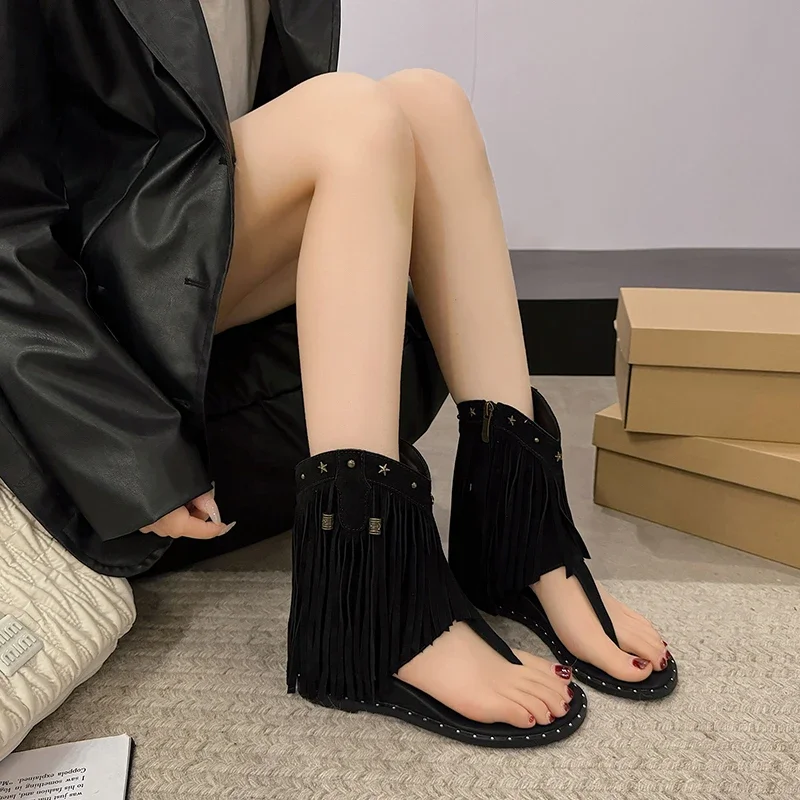 Studded Women's Low Heel Tassel Summer Roman Luxury Sandal