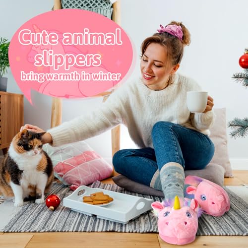 • Cute Animal Plush Slippers: you will get 1 pair of women's slippers, cute unicorns with furry uppers, to meet your use and dress up needs