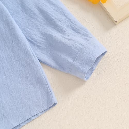 Kids Little Boy Cotton Linen Shirt Button Down Long Sleeve Henley Shirts Boys Dress Shirts with One Pocket 5