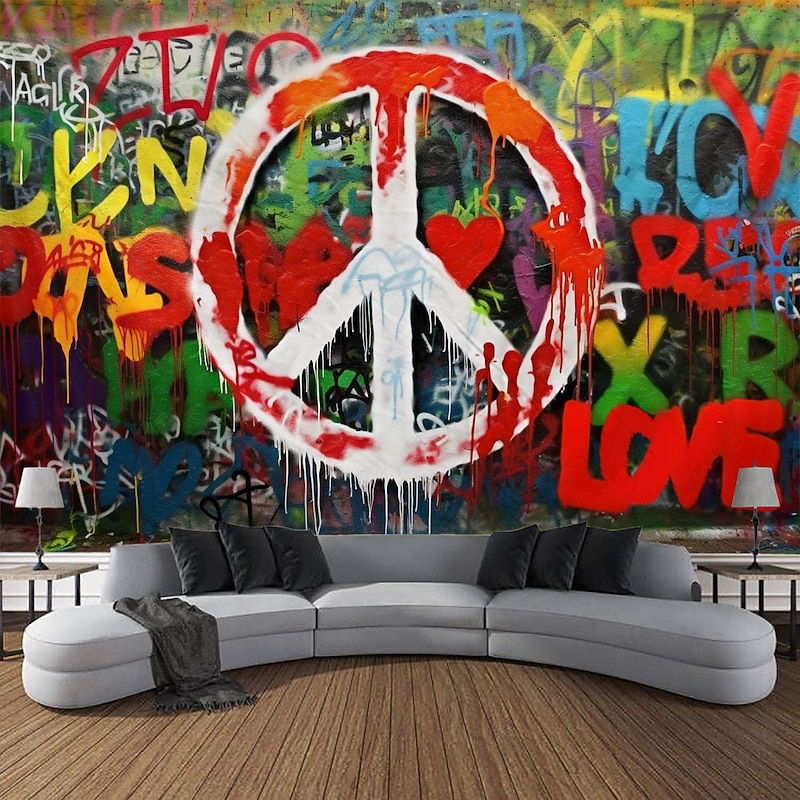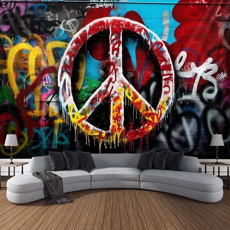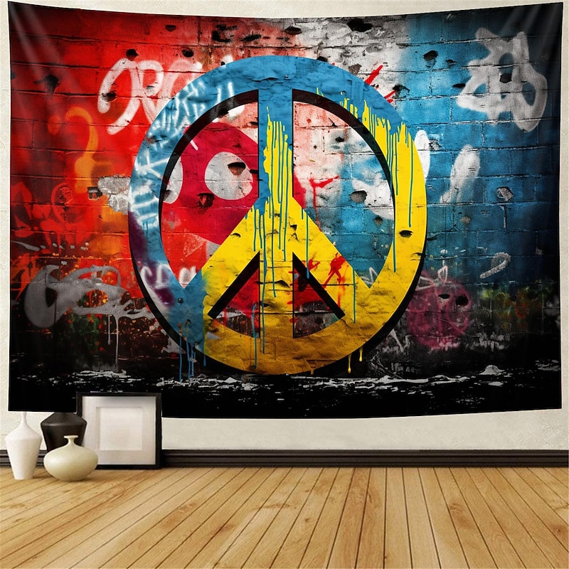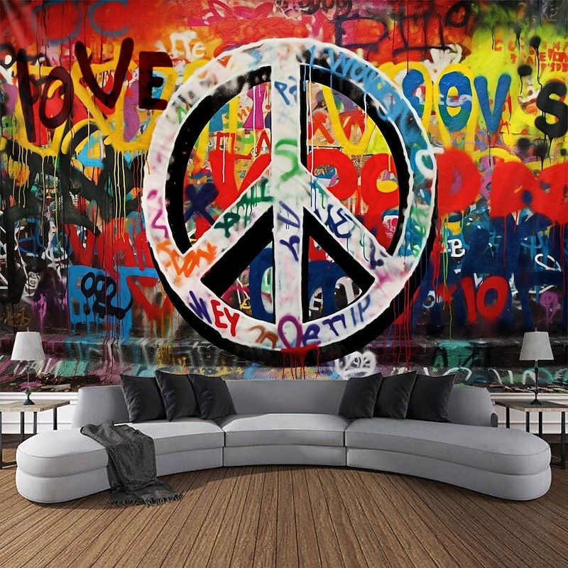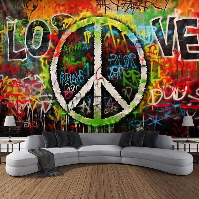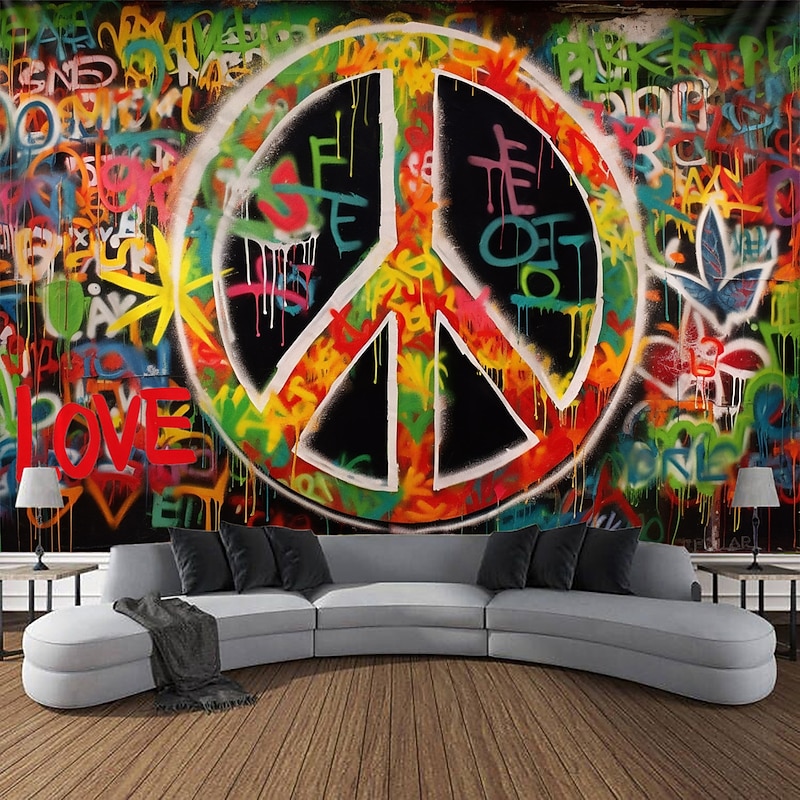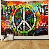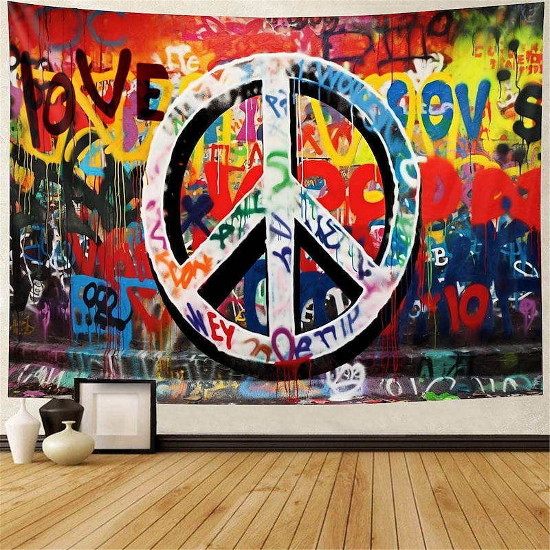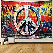 HOT ! Hippie Groovy Hanging Tapestry Wall Art Large Tapestry Mural Decor Photograph Backdrop Blanket Curtain Home Bedroom Living Room Decoration Peaceful Love 1950s 1960s Music Festival Woodstock Party