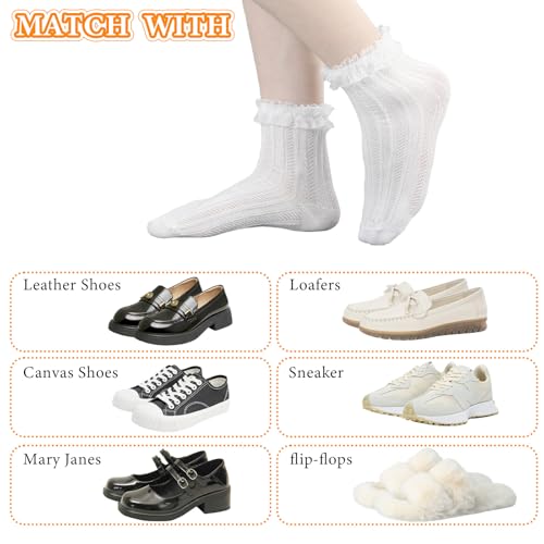 • Elevate Your Style with Ouligay Ruffle Socks: Experience the perfect blend of elegance and comfort with Ouligay women ruffle socks. Crafted from premium polyester, these socks offer a soft that enhances your style. Designed for women who appreciate a touch of frill, these white socks are ideal for pairing with dresses, skirts, and casual outfits, making them a versatile addition to your wardrobe