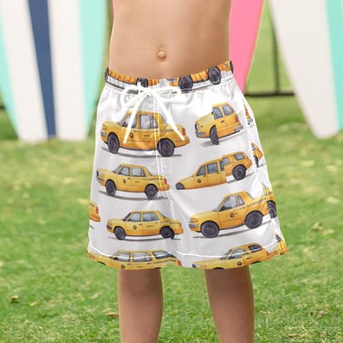 Pigsaly Boys' Swim Board Shorts Watercolor Sportcar Yellow Taxis Car Boy's Swim Trunks Kids Swimwear XS 4