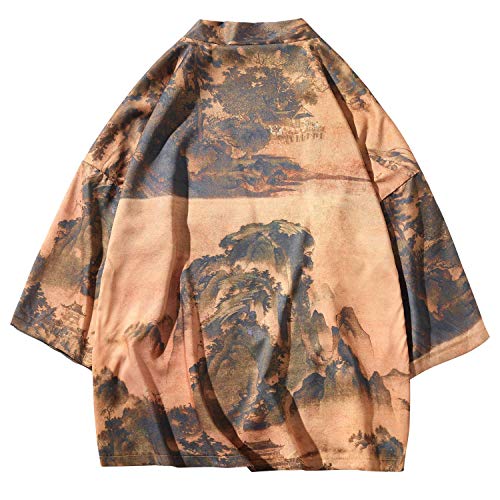 Hotmiss Men's Kimono Cardigan Jacket Japanese Style Flying Crane Seven Sleeves Open Front Coat 7