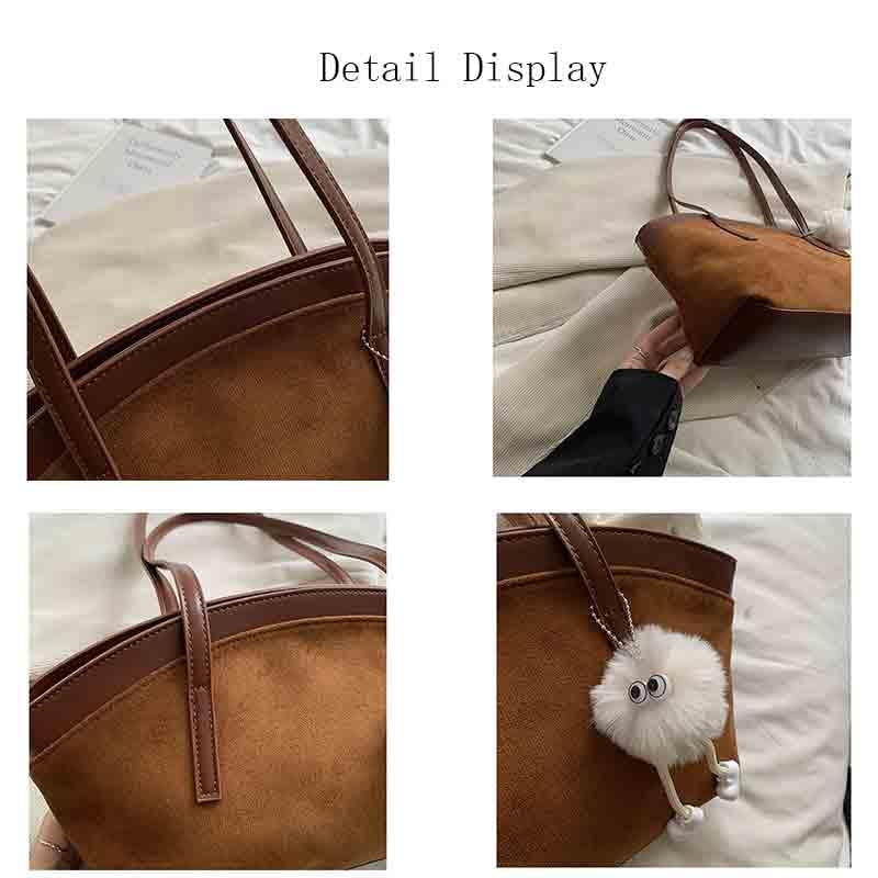 • Retro Appearance: This niche women's shoulder bag showcases a vintage autumn and winter feel. The unique shape of the shell, combined with suede material, is fashionable and chic. The use of contrasting color elements adds an artistic touch to the bag, making you the center of attention.