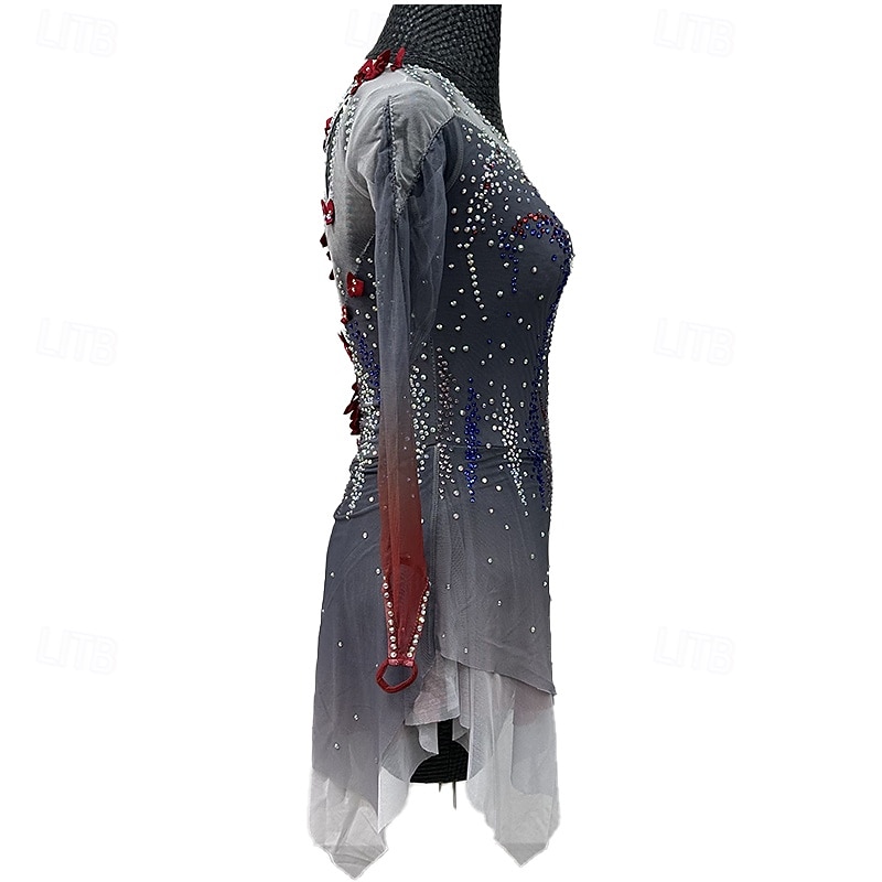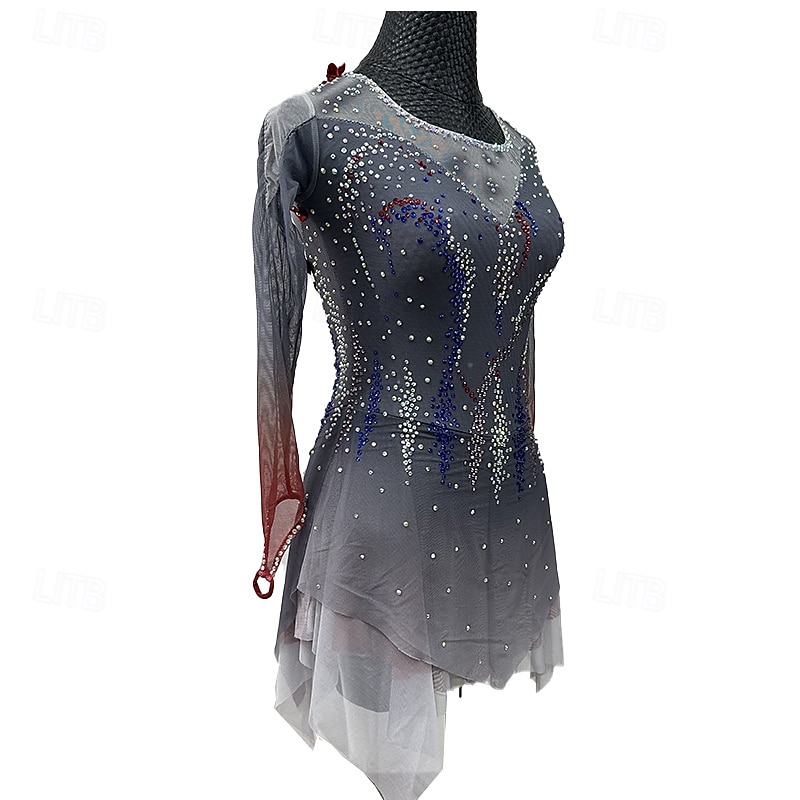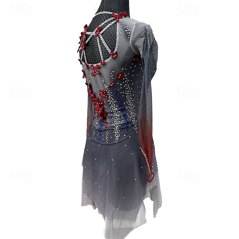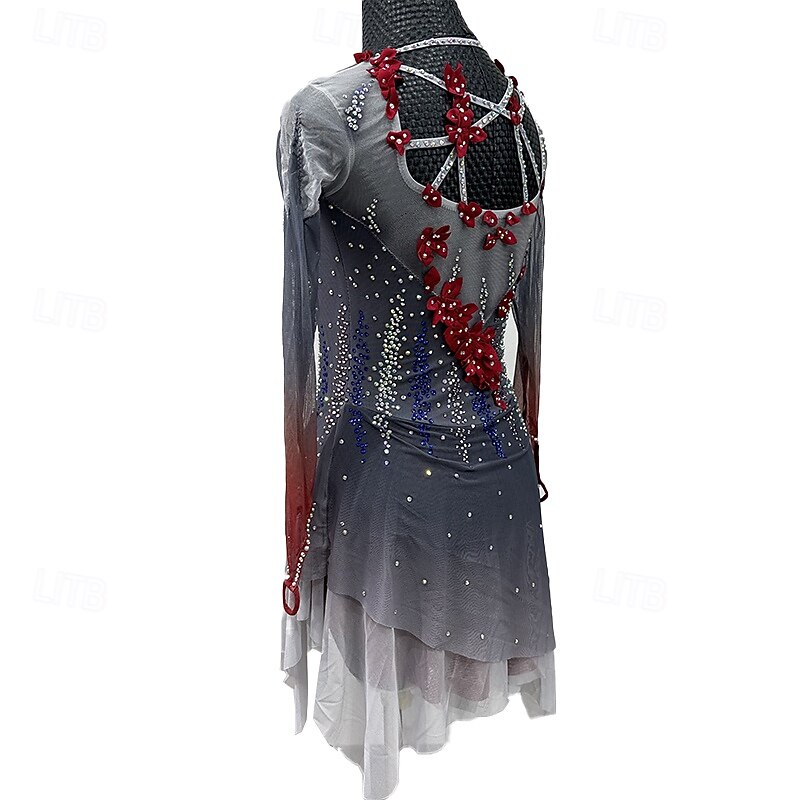 More information about Figure skating costumes for adults and children black custom spandex mesh grading performance costumes competition training rhinestone shaped women's skirts performance costumes