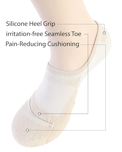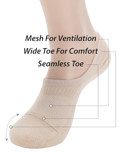 Pro Mountain Seamless No Show Socks Wide Toe Box For Health Bunion Unisex Size S to L Cotton Cushion Footies 4