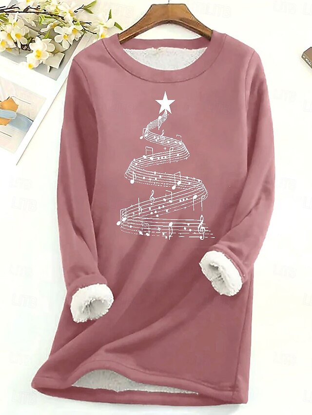 More information about Women's Pullover Sweatshirt Graphic Christmas Tree Warm Casual Fuzzy Long Sleeve Crew Neck Long Tops Street Casual Black Pink Dark Pink Blue Spring Fall Winter