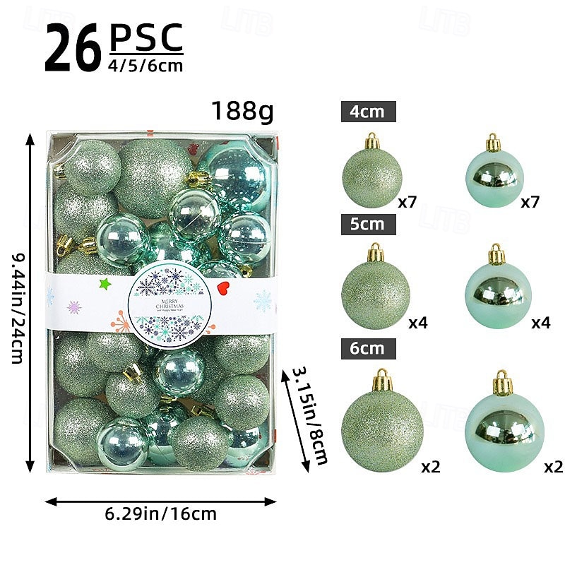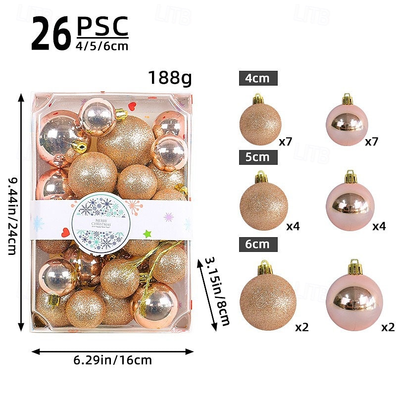 HOT ! 26pcs Christmas Baubles Ball Ornaments Xmas Decoration, 4/5/6cm Shatterproof Holiday Tree Balls, Colorful Christmas Tree Hanging Ornaments for Home, Party and Store Display