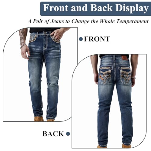 More information about Men's Relaxed Straight Fit Jeans with Comfort Flex Classic Pants for Men Straight Leg Casual Embroidered Jeans
