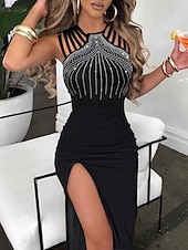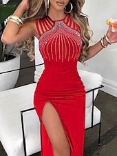 More information about Women's Normal Long Dress Maxi Dress Sequin Dress Elegant Dress Birthday Formal Sleeveless Evening Party Form Fit Solid Color Sleeveless Asymmetrical Black Red Blue Spring