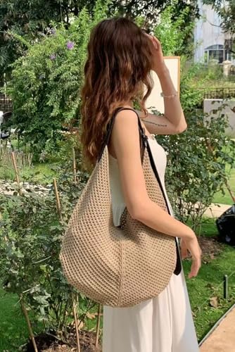 More information about Women Large Cotton Crochet String Bag Slouchy Summer Beach Hobo Bag Knitted Vacation Purse Bohemian Shoulder Crossbody Bag