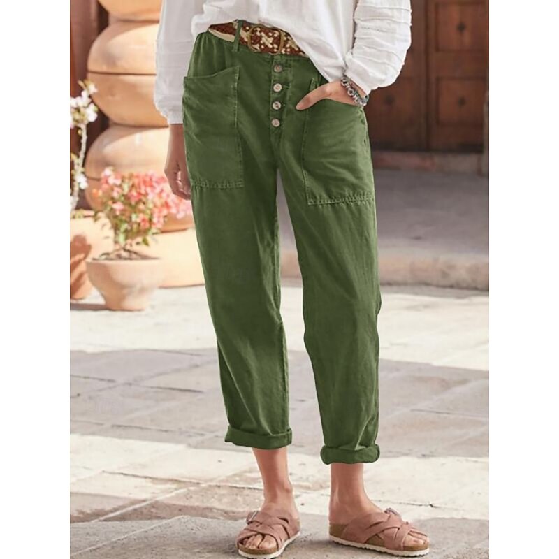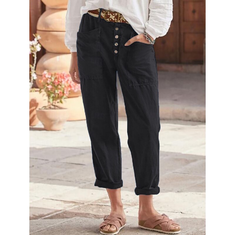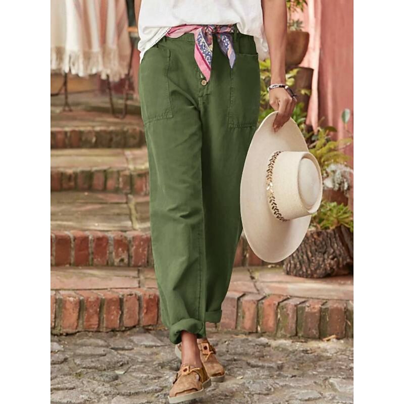 More information about Women's Cotton Linen Baggy Pants Solid Color Chinos Basic Casual Full Length High Waist Medium Waist Plain Pocket Comfort Outdoor Micro-elastic Vacation Street Daily Army Green Grey Black Red