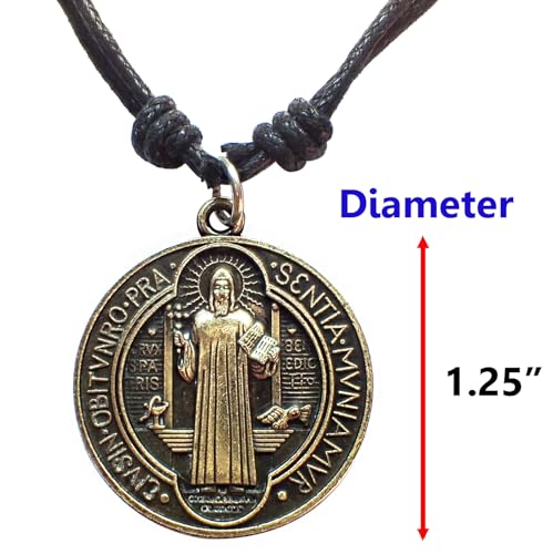Antique Bronze Saint Benedict of Nursia Medal Pendant Adjustable Waxed Cord Necklace 16-30", Religious Catholic Charm 1