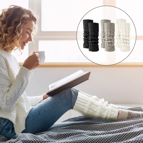 HOT ! 3 Pairs Women's Leg Warmers, Knee High Knit Warmers, Winter Leg Warmers for Long/Low Boot Socks Dance Sports Cycling, White, Black, Gray