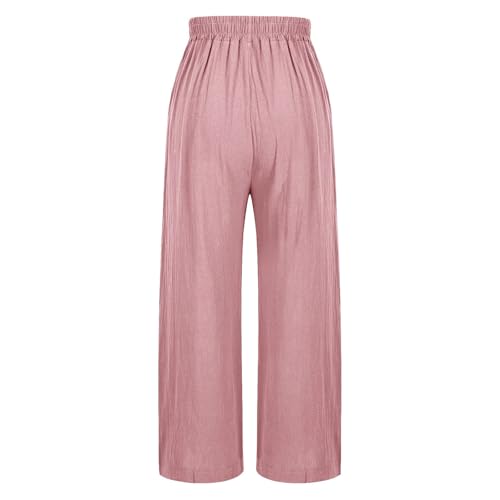 HOT ! Cropped Linen Pants for Women Floral Embroidered Wide Leg Capri Pant High Elastic Waist Summer Trousers with Pockets