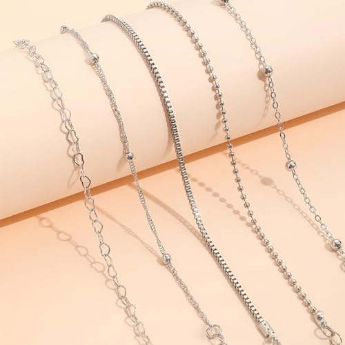Silver Stackable Bracelets Set for Women,Dainty Gold Heart Chain Bracelet Pack Trendy Stack Link Bracelets,Boho Jewelry Accessories Gift for Lover 5