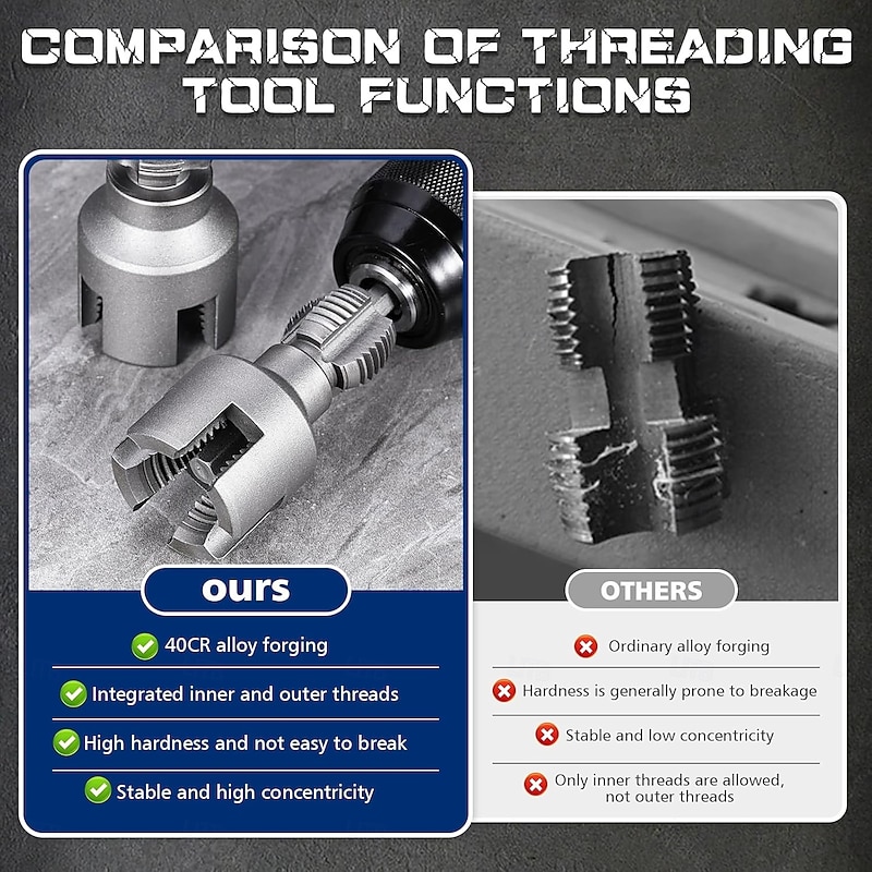 $9.99 - 2Pcs Pipe Thread Cutting Tool Integrated Internal & External Pipe Threading Tool 1/2'' and 3/4'' Water Pipe Internal &External Integrated Threader with Electric Drill Pipe Threader Rethreading Kit 2025. Shop for cheap Tool Accessories online? Buy at lightinthebox.com on sale today!