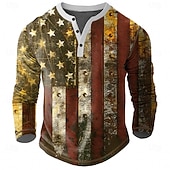 More information about Men's Graphic Flag Henley Shirt Tee Long Sleeve Vintage Fashion Designer Outdoor Casual Daily Spring & Fall All Seasons Navy Blue khaki Henley Henley T-Shirt