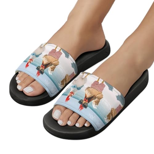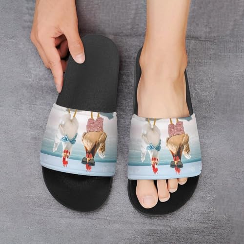 HOT ! Two Chickens Beach House Slippers for Women Men Lightweight Open-toe Slide Shoes for Bathroom Swimming Beach