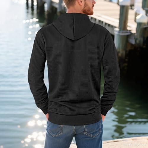 Mens Pullover Hoodies Casual Long Sleeve Henley Collar Button Drawstring Hooded Sweatshirts Lightweight Sports Jacket 1