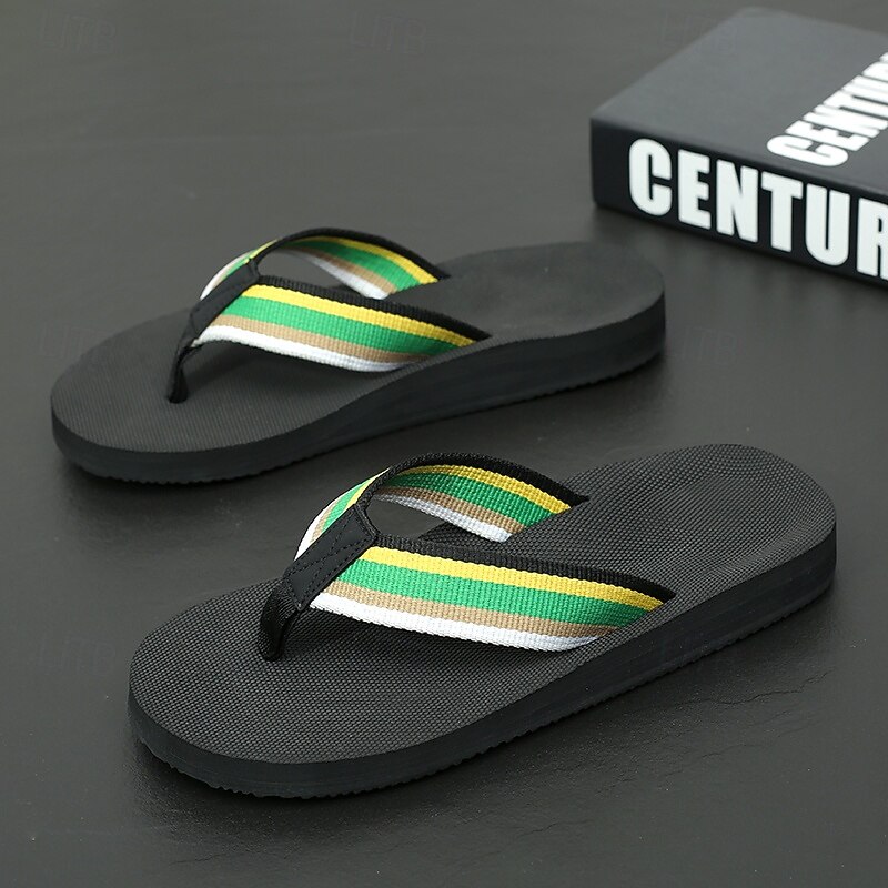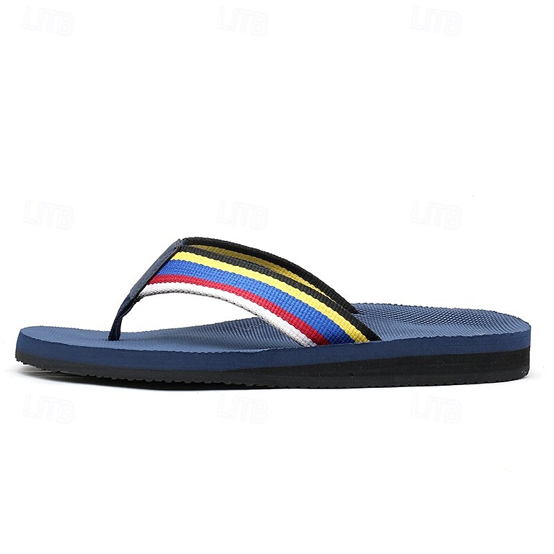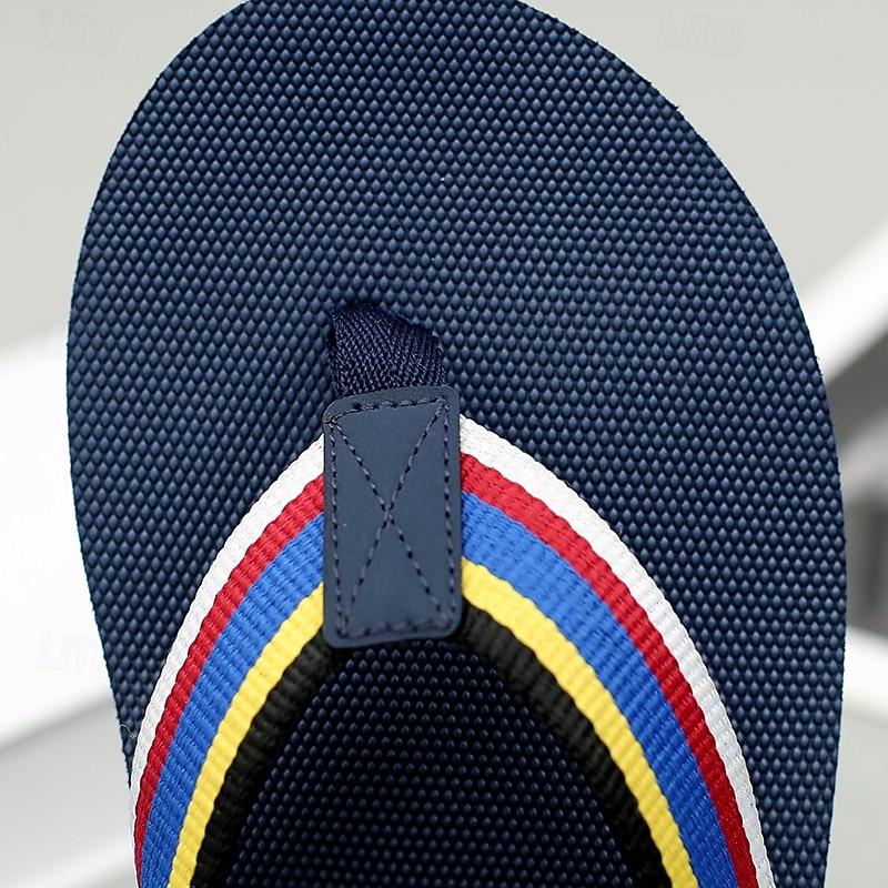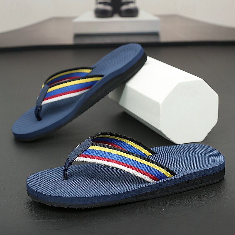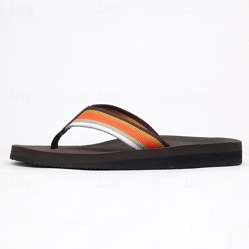 Men's Brown Flip Flops with Multi-Color Striped Strap, Casual Style for Beach and Summer Wear 12