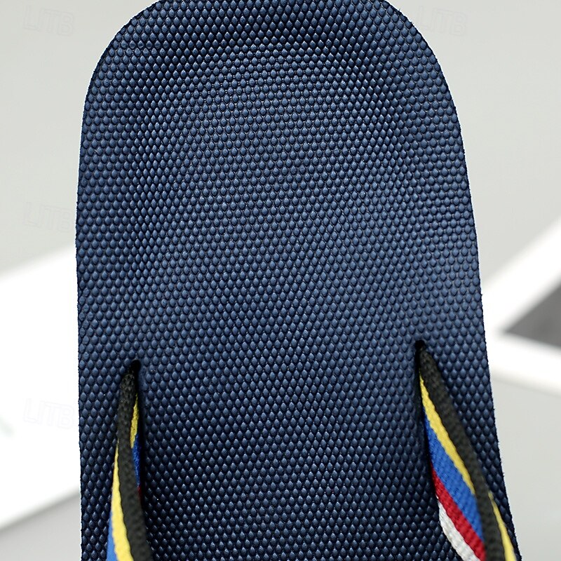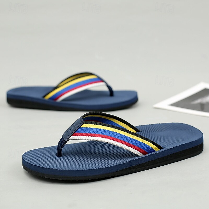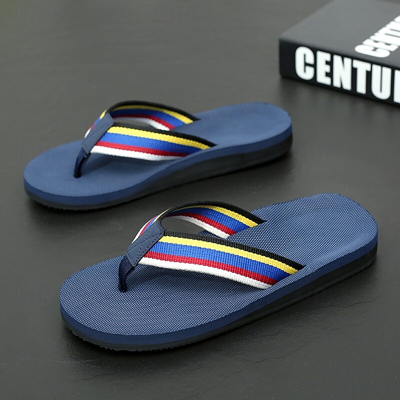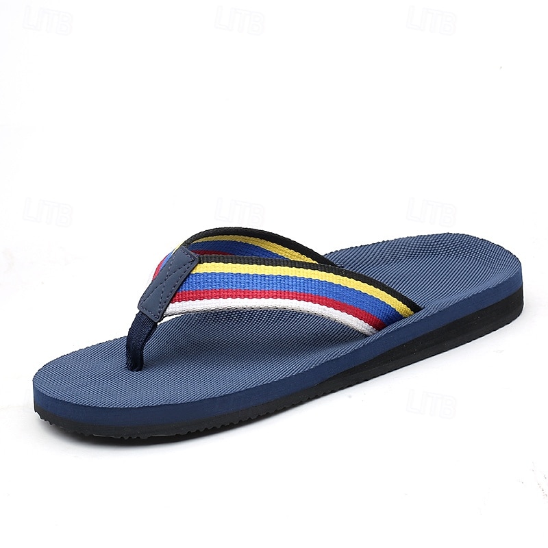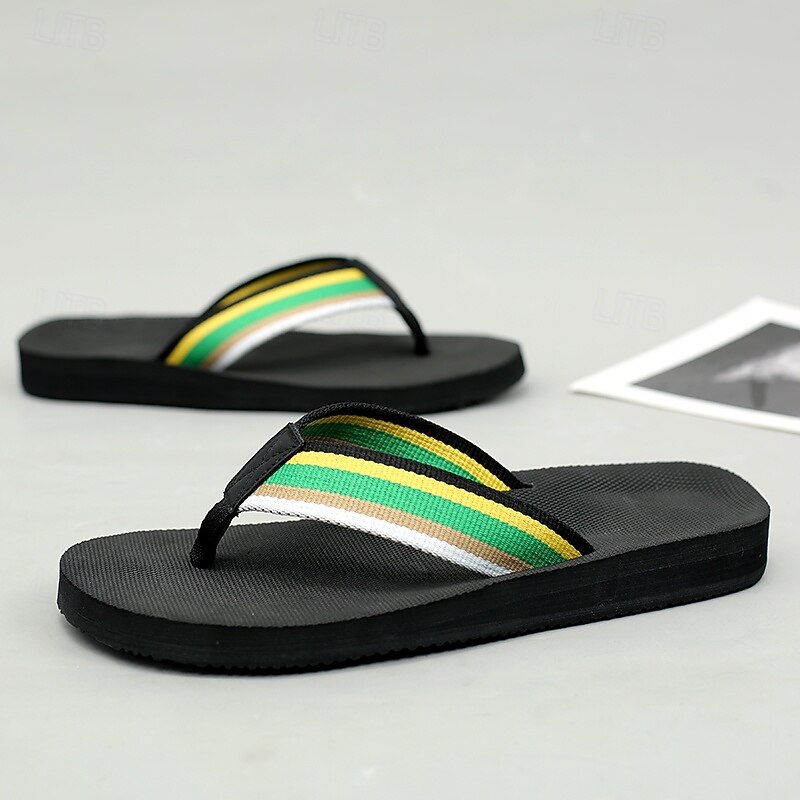 Men's Brown Flip Flops with Multi-Color Striped Strap, Casual Style for Beach and Summer Wear 12
