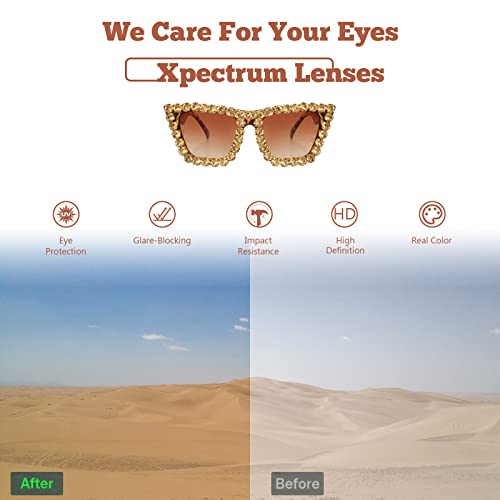 • UV400 Protection: Xpectrum sparkly rhinestone sunglasses are made of high definition lenses with UV400 protection, effective at blocking harmful ultraviolet light rays such as UVA, UVB, reducing glare from sunlight. Our lenses greatly help eliminate UV exposure to your eyes, and provide a all-rounded protection for your eyes