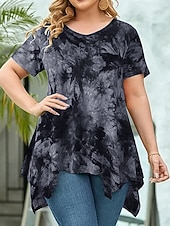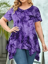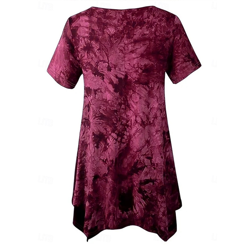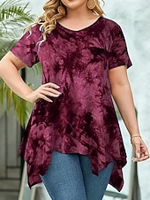 More information about Women's Plus Size Tops Blouse Tie Dye Print Short Sleeve V Neck Fashion Streetwear Daily Weekend Polyester Summer Wine Purple