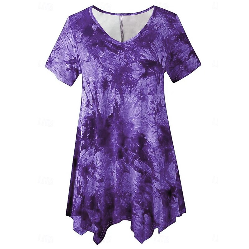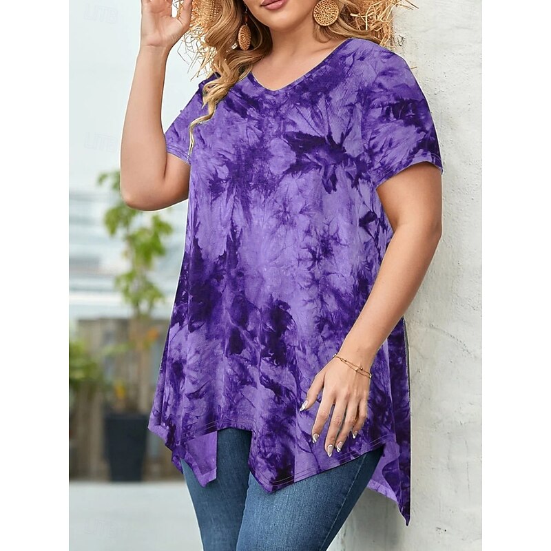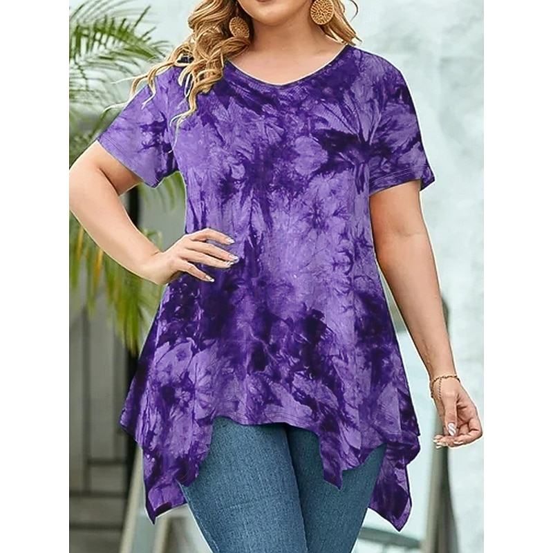 HOT ! Women's Plus Size Tops Blouse Tie Dye Print Short Sleeve V Neck Fashion Streetwear Daily Weekend Polyester Summer Wine Purple