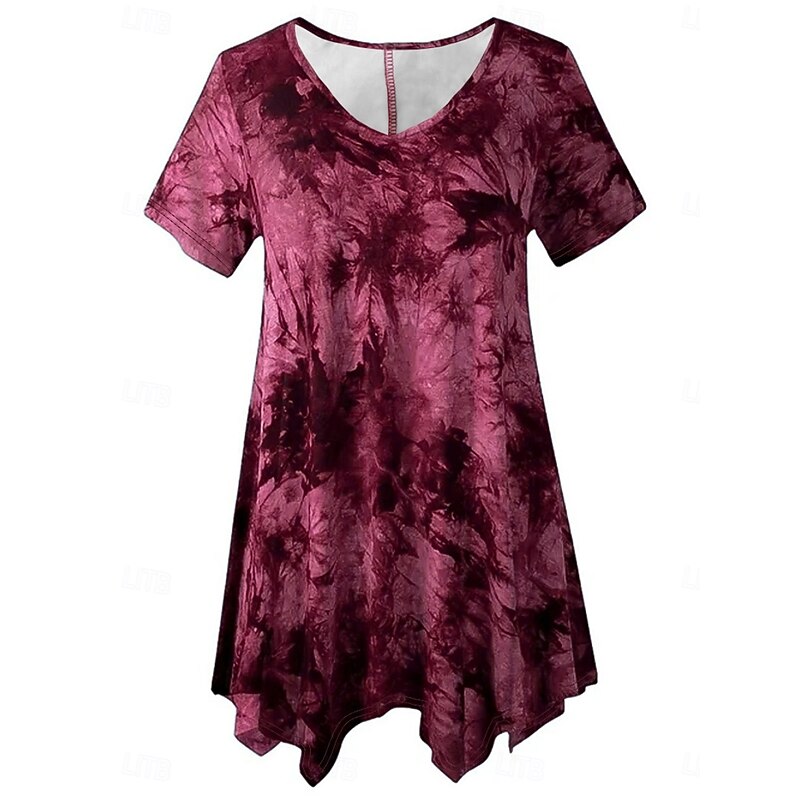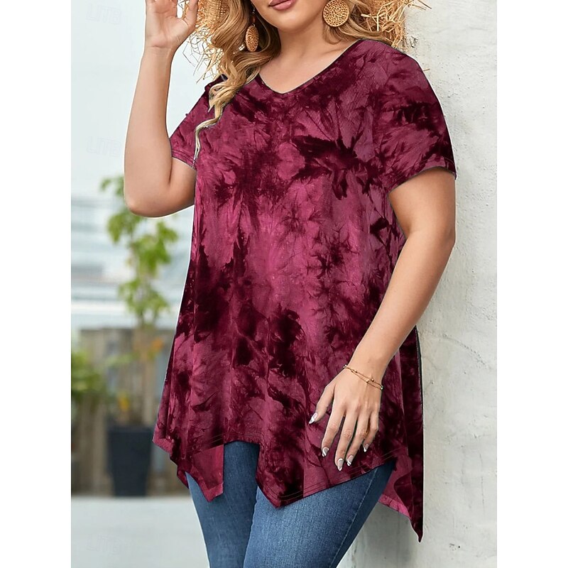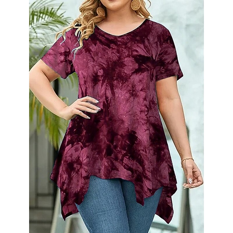 Women's Plus Size Tops Blouse Tie Dye Print Short Sleeve V Neck Fashion Streetwear Daily Weekend Polyester Summer Wine Purple 12