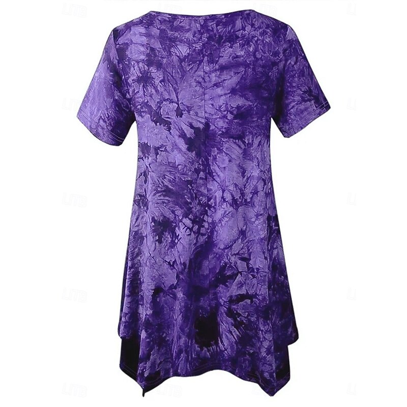 Women's Plus Size Tops Blouse Tie Dye Print Short Sleeve V Neck Fashion Streetwear Daily Weekend Polyester Summer Wine Purple 7