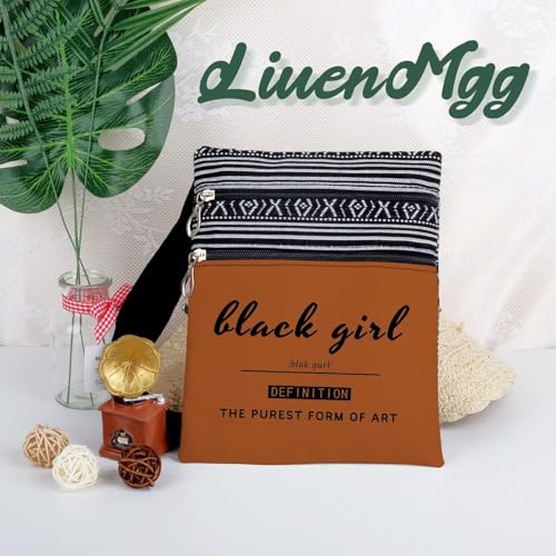 Black Lady Messenger Bag Small Ethnic Pattern Printed Adjustable Strap Crossbody Zipper Bag Inspirational Slogan Phone Bag Wallet Cute Shoulder Handbag for Black Ladies Women 1
