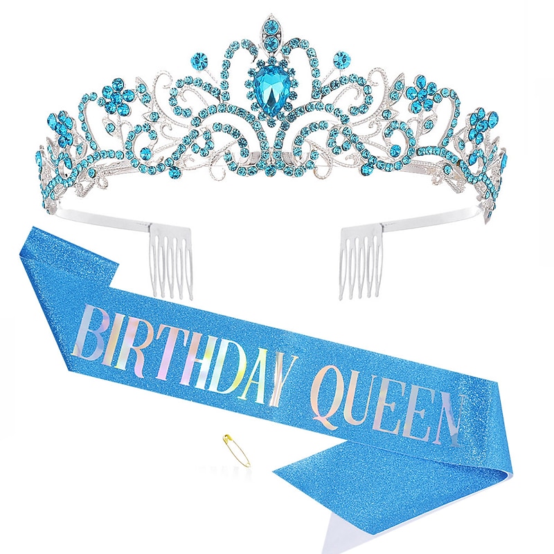Highlights Party Decorations Specialist : Create memories you can't put into words... We had so much fun designing this birthday gift set, we hope they add just as much fun to your parties too. Beautiful Elegant Birthday Sash Made from soft glitter fabric will compliment any outfit.Dimension : 63" long and 3.74" wide,No size trouble + Comfortable wearing. Rhinestone Birthday Tiara : Perfect for a birthday party,  Crystal diamonds shine like real diamond, End rubber stoppers design that allows sitting comfortably on the head, not easy to slip off. Sash. Made from soft glitter fabric will compliment any outfit and is durable enough to last day into night. NOTE: Please use cool iron and iron on the reverse side only.