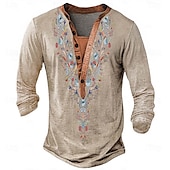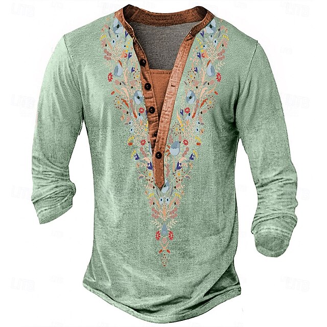 More information about Men's Print Ethnic T Shirt Henley Shirt Long Sleeve Designer Retro Vintage Ethnic Street Casual Daily Summer Spring Fall Blue Green Khaki Grey Henley Henley T-Shirt