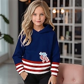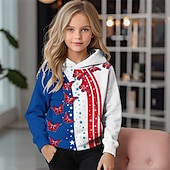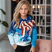 More information about American Independence Day Girls' 3D Flag Hoodie Long Sleeve Spring Fall Fashion Streetwear Kids 4-12 Years Hooded Outdoor Casual Daily Regular Fit