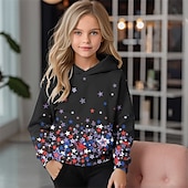 American Independence Day Girls' 3D Flag Hoodie Long Sleeve Spring Fall Fashion Streetwear Kids 4-12 Years Hooded Outdoor Casual Daily Regular Fit 11