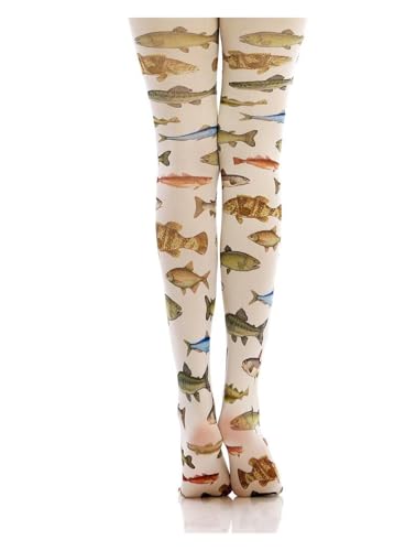 • DESIGN: Fashionable white velvet tights featuring an all-over fish pattern print with various species in natural colors for a , eye-catching look