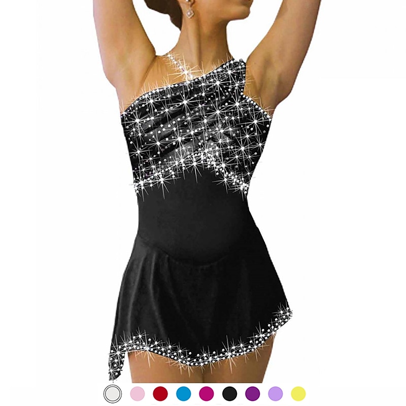 More information about Figure Skating Dress Women's Girls' Ice Skating Dress Outfits Black White Yellow Spandex High Elasticity Competition Skating Wear Crystal / Rhinestone Sleeveless Ice Skating Figure Skating
