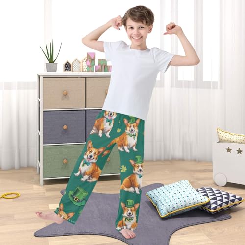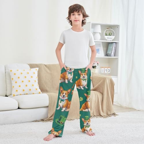 Corgi Dog Lucky Clovers Boys Long Pants Soft Trousers Elastic Waist Kids Lounge Bottoms with Pockets S-XL 6
