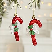 2pcs Christmas Ornaments Set: Red Mushroom, Car, Pinecone, Lollipop, and House Shaped Decorations, Unique Hanging Pendants for Holiday Décor 16