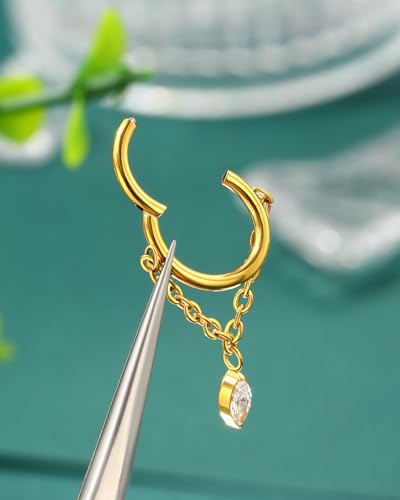 HOT ! COCHARM 16g Titanium Dangle Chain Helix Earrings Gold Dangling Rook Hoop Piercing Jewelry, 8mm Dangly Chain Gold Helix Ring Surgical Steel Rook Earring for Women Men