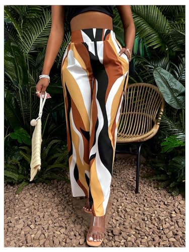 • Features: casual pants with all over print, elastic high waist, loose fit, wide leg, pockets