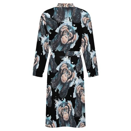 Chimpanzee Cute Watercolor Soft Robe Long Sleeve Bathrobes V Neck Sleepwear Spa Robes with Belt Men Woman 3