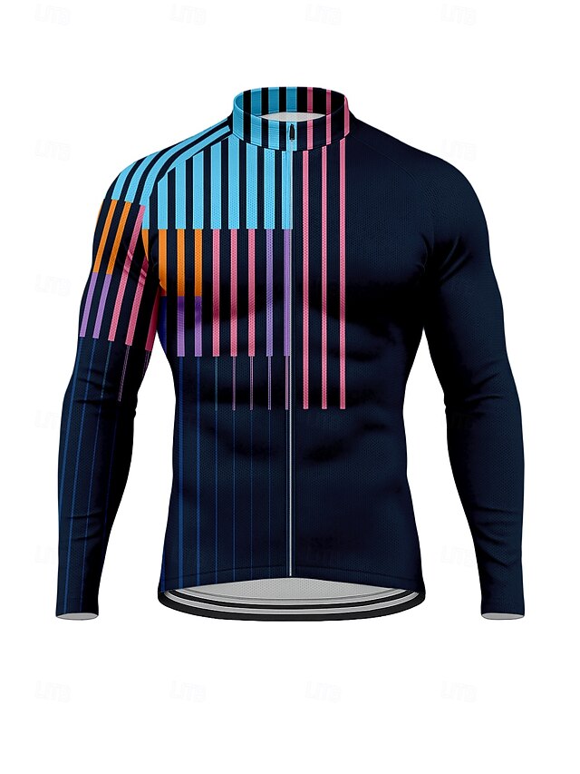 $34.99 - Men's Geometric Striped Long Sleeve Cycling Jersey with Pockets Sun Protection Quick Dry Dark Navy 2025. Shop for cheap Men's Jerseys online? Buy at lightinthebox.com on sale today!