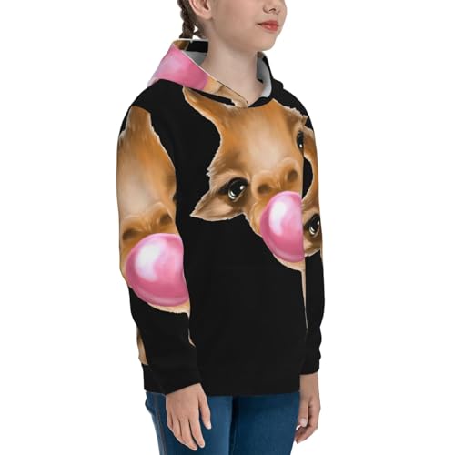 HOT ! Funny Giraffe Blowing Bubble Kid Hoodies Boys Sweatshirts Girls Pullover with Pocket