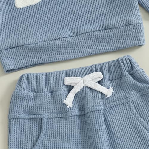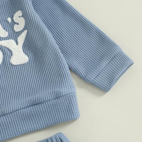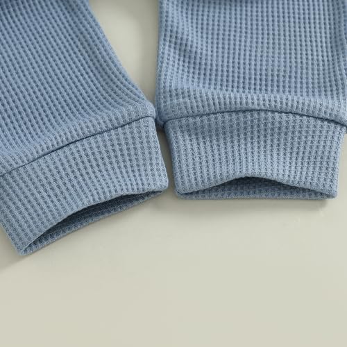 Infant Fall Winter Outfit Waffle Baby Boy Clothes Letter Long Sleeve Sweatshirt and Stretch Pants 6 12 18 24M Set 2