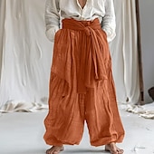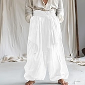 More information about Men's Linen Pants Trousers Summer Pants Baggy Pants Drawstring Elastic Waist Wide Leg Plain Comfort Breathable Full Length Home Yoga Holiday Fashion Classic Style White Navy Blue Micro-elastic