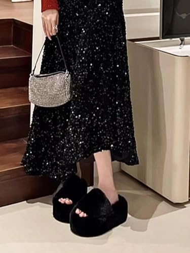 • FUZZY HOUSE SLIPPERS: Easy slip-on style with plush faux fur upper cradles your feet in fuzzy comfort. Classic slide style with fashion thick sole design makes them the perfect indoor and outdoor slippers.