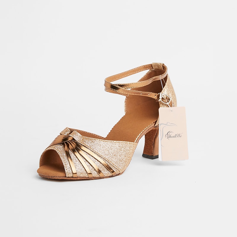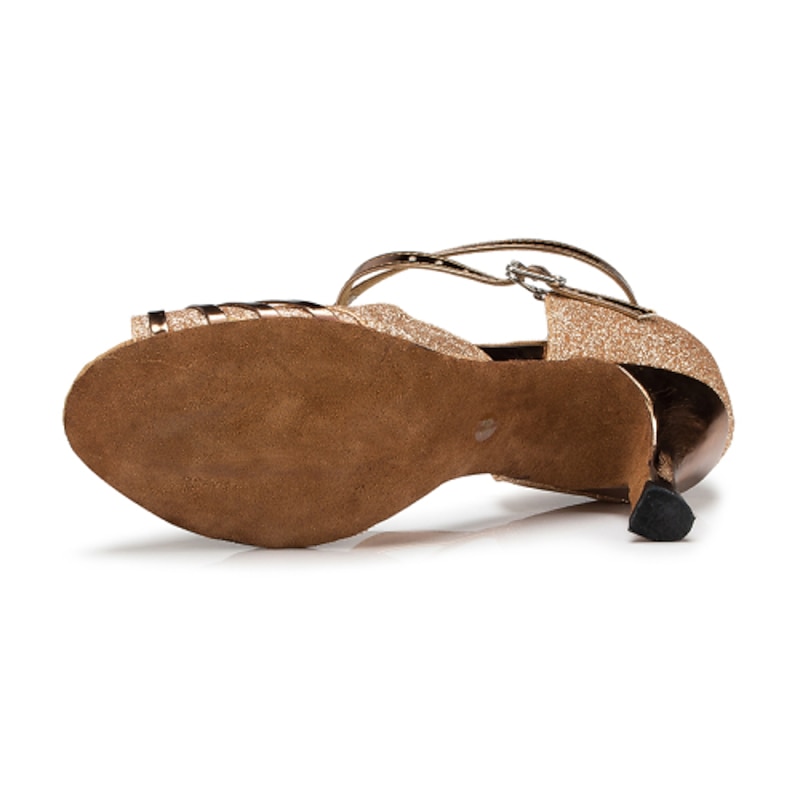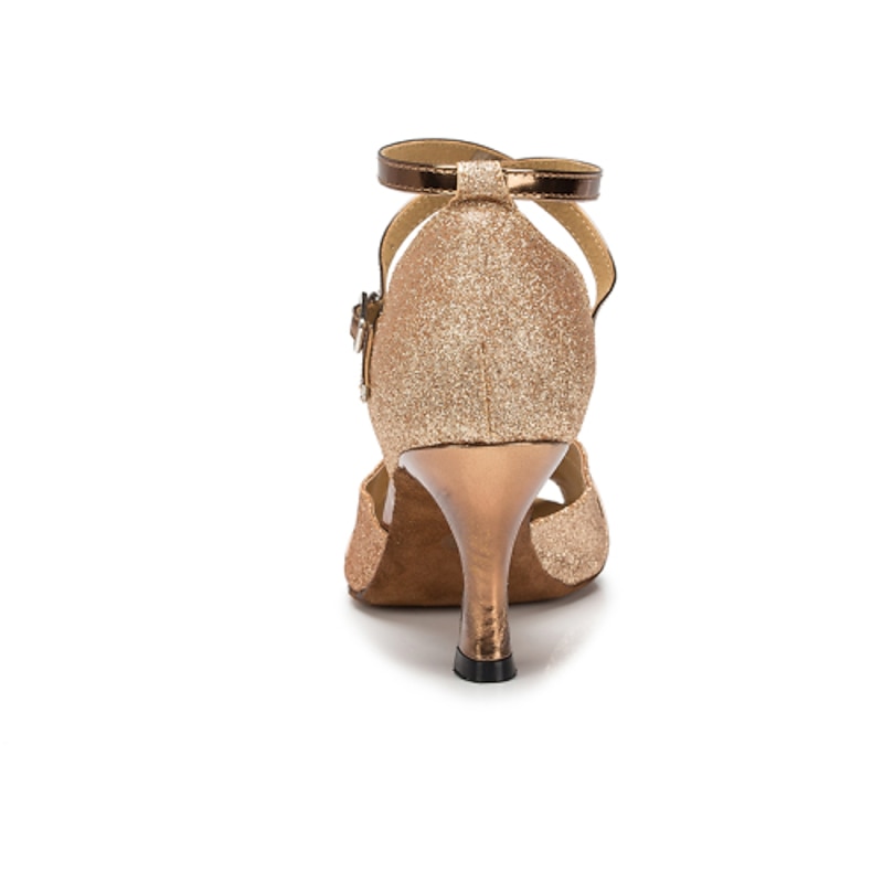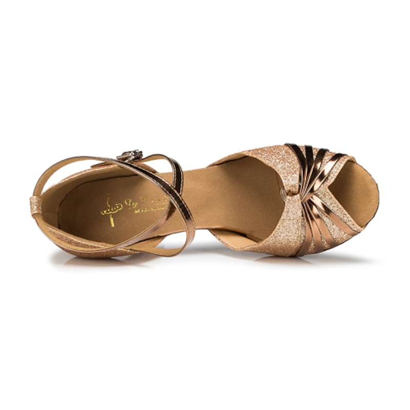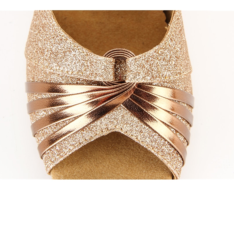 More information about Women's Rose Gold Glitter Dance Shoes with Open-Toe, Soft Suede Sole and Strappy Design - Adjustable Buckle for Latin and Ballroom Dancing