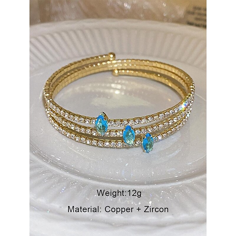 Women's Gold-Plated Copper Bracelet with Blue Zircon - Elegant Jewelry for Formal and Casual Occasions 2